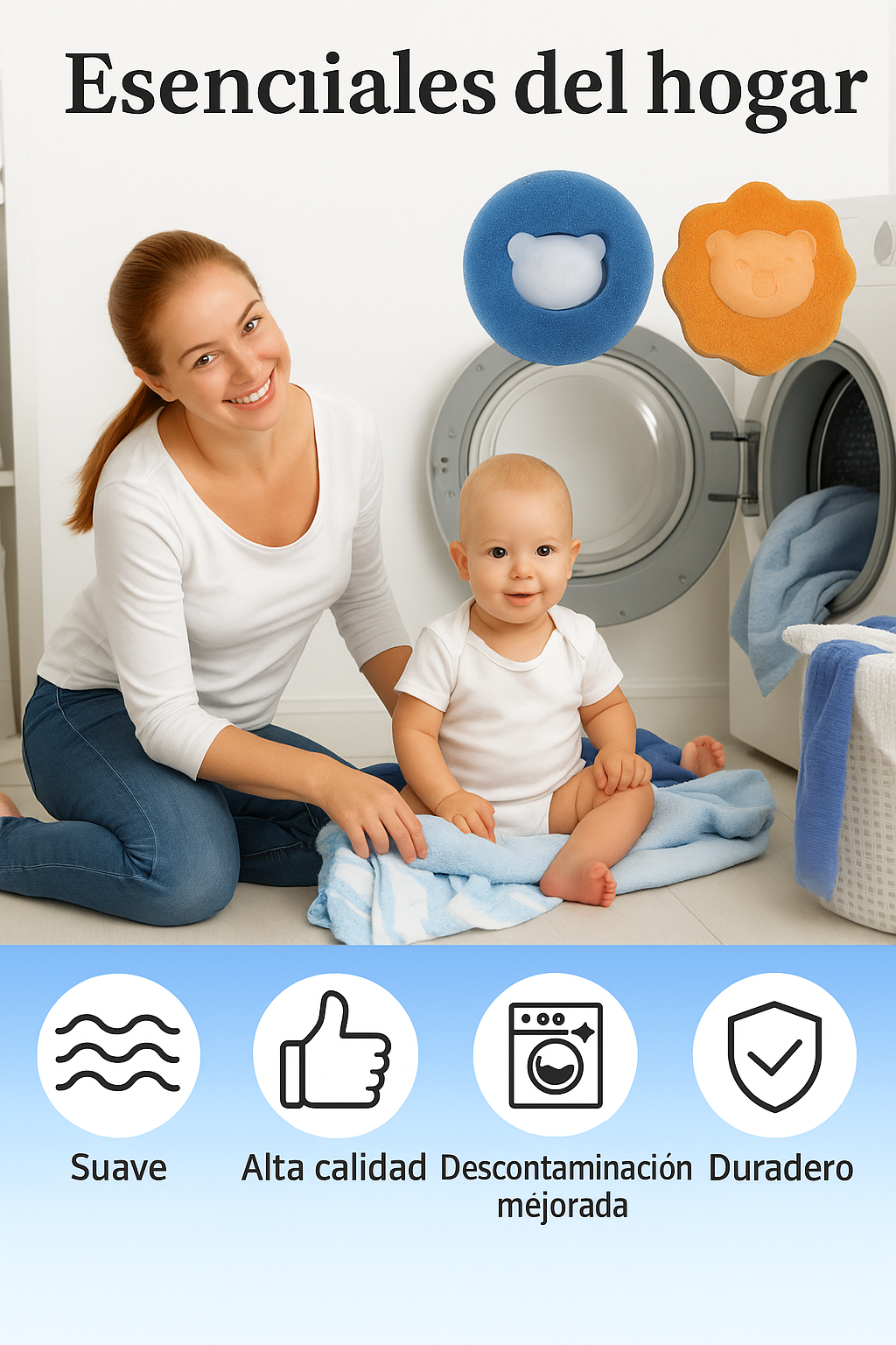 🧺 ¡BOLA QUITAPELUSAS REUTILIZABLE PARA LAVADORA Y SECADORA – Ropa impecable sin pelos ni pelusas!